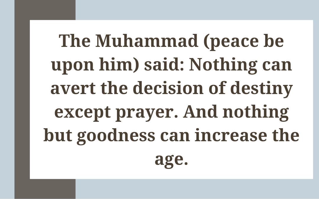 The prophet Muhammad (PBUH) said: Continue to plead and supplicate to Allah through ياذَالجلالِ وَالْاِكْرَام. The Muhammad (peace be upon him) said: nothing can avert the decision of destiny except prayer. And nothing but goodness can increase the age.